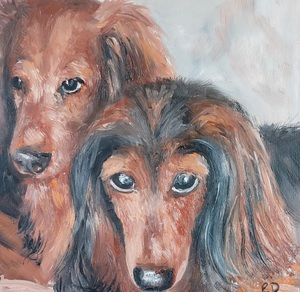 2022Klein schilderij van 2 langharige teckels